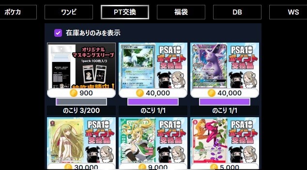 PSA鑑定品も取り扱っているのが魅力的で、コレクターにはたまらないサービスですね。