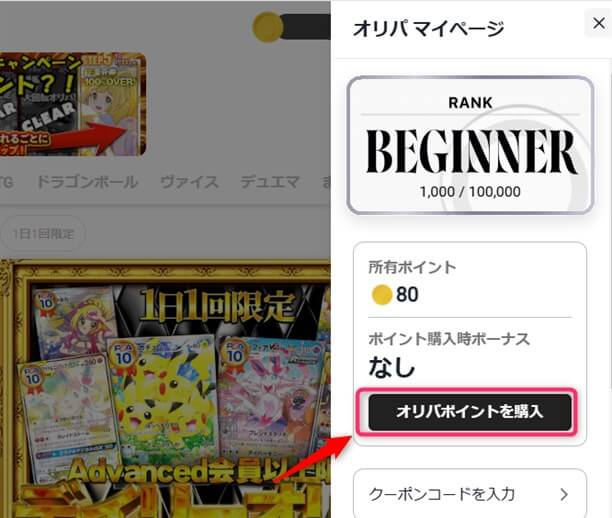 チャージした分しか使えないため、後から「使いすぎた」と後悔しにくく、オリパ初心者の方にも安心です。