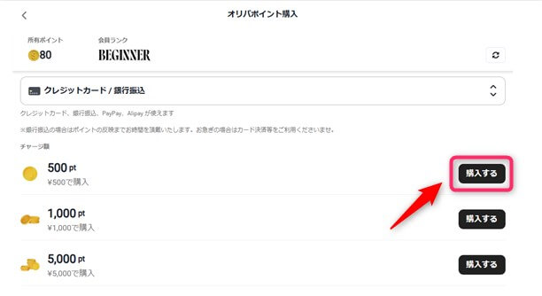 購入したいオリパポイントを選び、「購入する」をタップします。