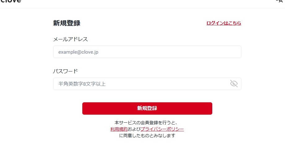 cloveのオリパを購入するためには、まず新規会員登録が必要です。