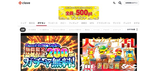 Cloveオリパは、ポケモンカードや遊戯王、ワンピースカードなど複数ジャンルをカバーしています。