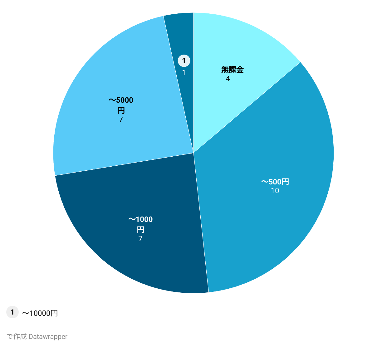 一方で「1000円以下」のライトユーザーも多数おり、無料〜低価格帯のニーズも根強い状況です。