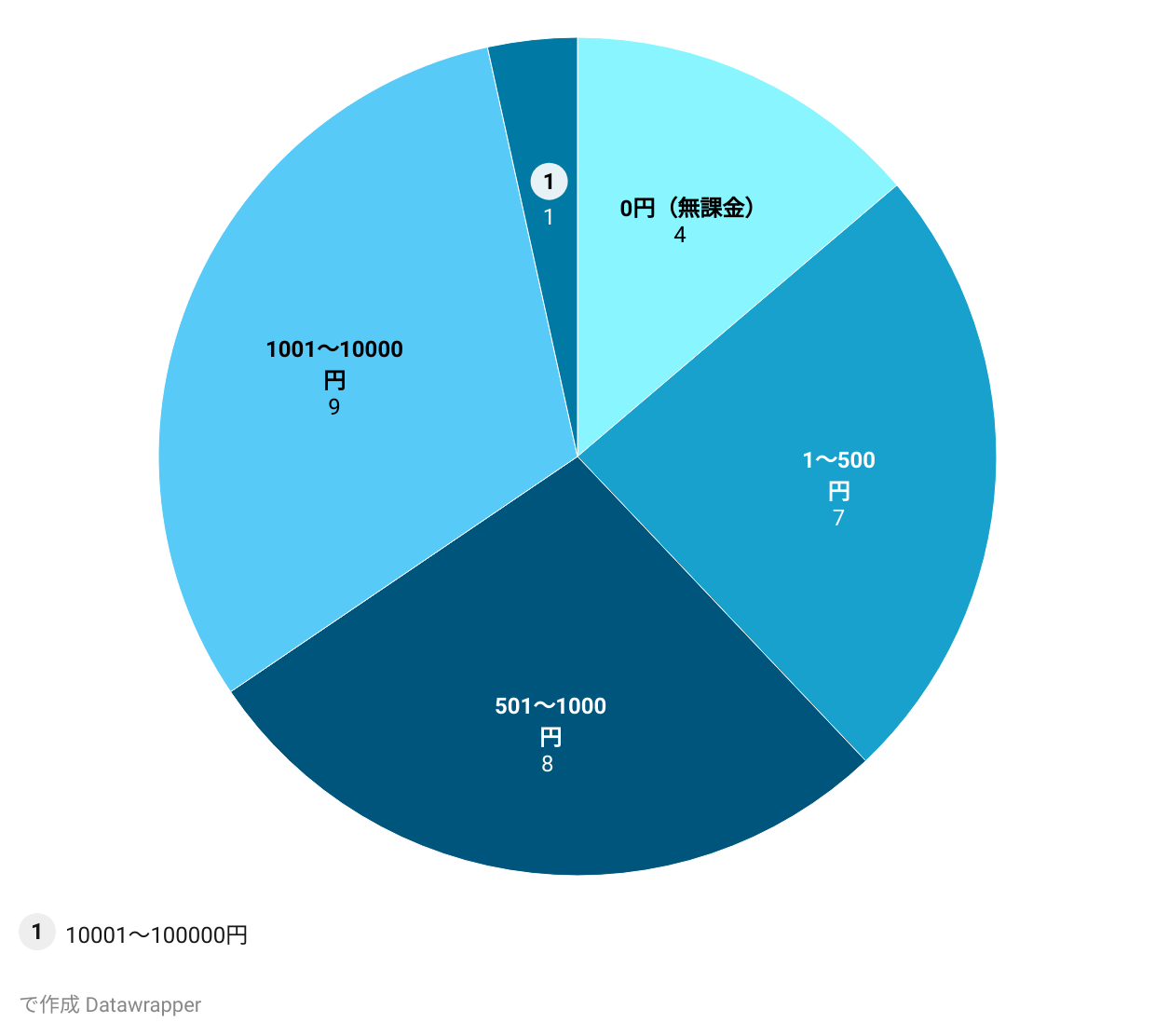 最も多かったのは「1001~10000円」の価格帯で、しっかり遊ぶ意欲のあるユーザーが目立ちます。