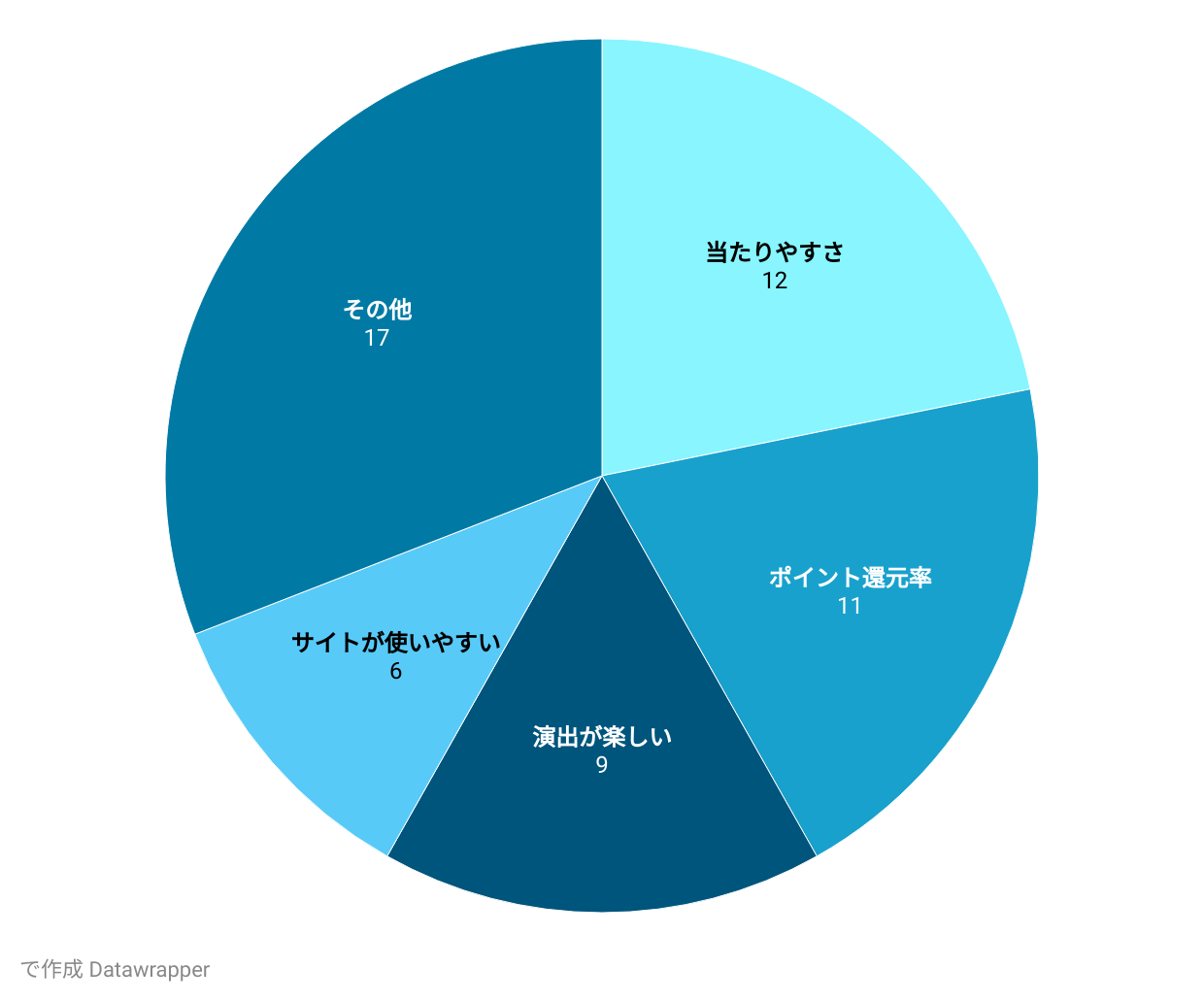 「当たりやすさ」や「ポイント還元率」が多く選ばれており、ユーザーは“お得感”を重視していることがうかがえます。
