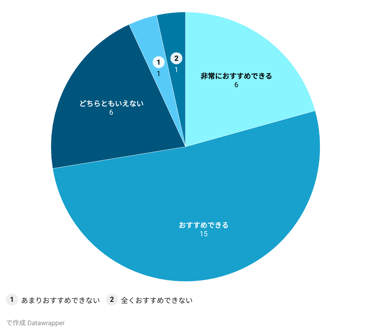 「おすすめできる」「非常におすすめできる」と回答した人が全体の約7割を占めており、初心者でも楽しめると感じているユーザーが多数派です。