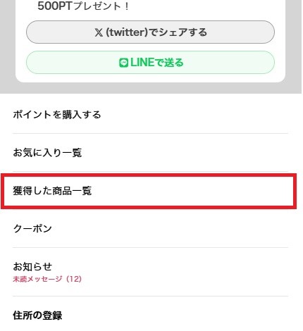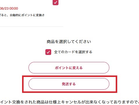 マイページの「獲得した商品一覧」から発送したい商品を選び、「発送する」をタップします。