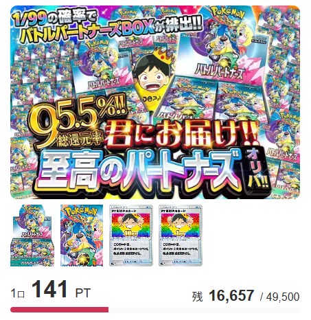 | 当たり確率 | 1/99の確率でバトルパートナーズBOX |