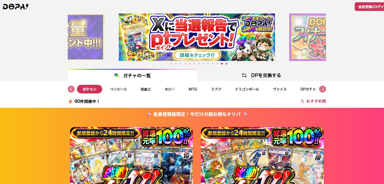 2023年1月24日にデビューしたDOPAは、オンラインで楽しめるオリパサービスを提供しています。