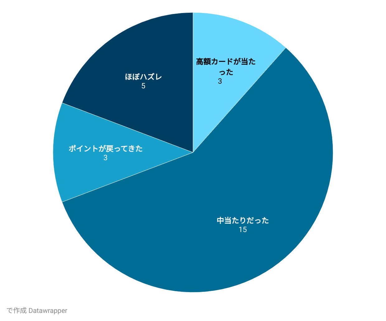 「高額カードが当たった」「ポイントが戻った」といった満足層も一定数いる一方で、「ほぼハズレ」の声も見られます。
