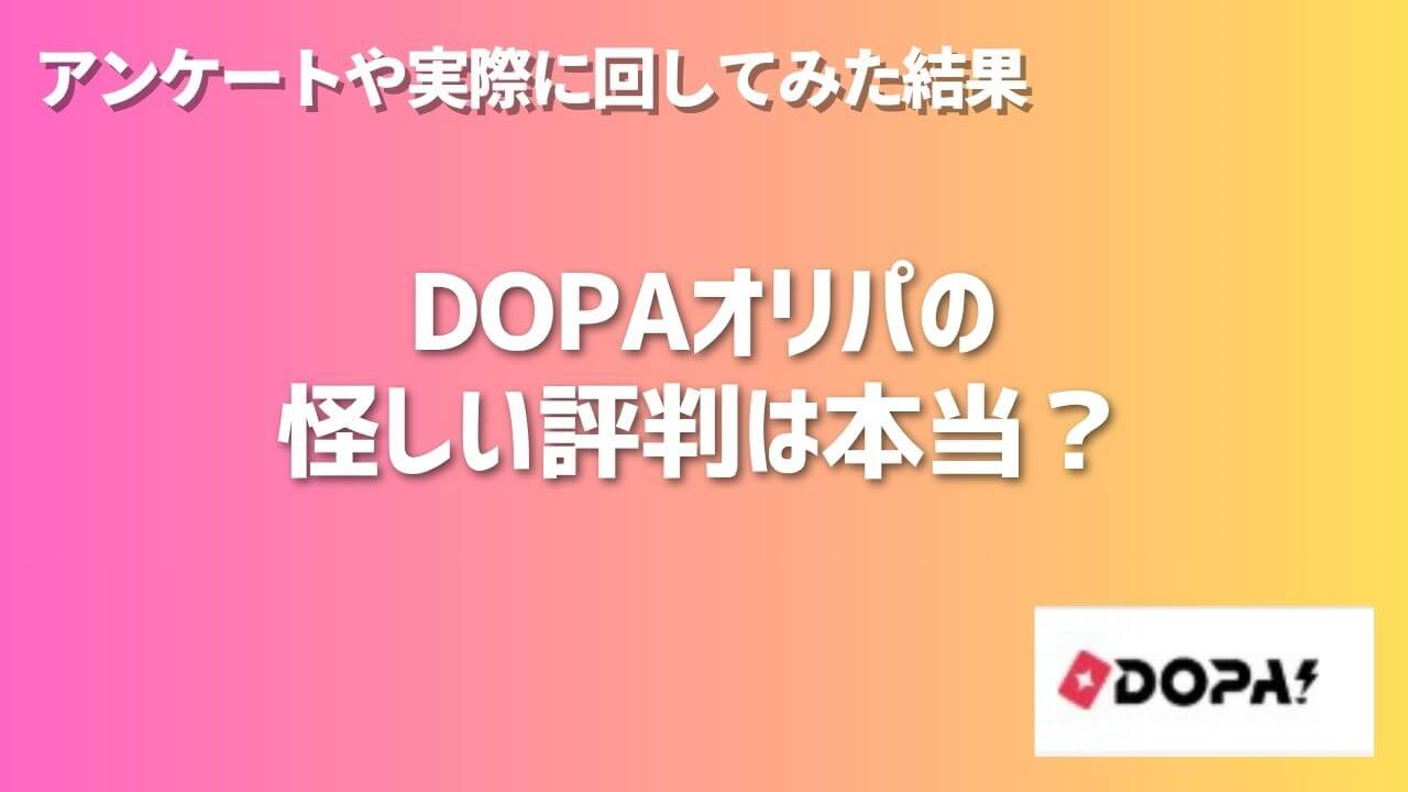 この記事では、DOPAオリパの実際の口コミ・評判、編集部の実体験レビュー、アンケート結果をもとに、安心して利用できるサービスなのかを客観的に検証します。