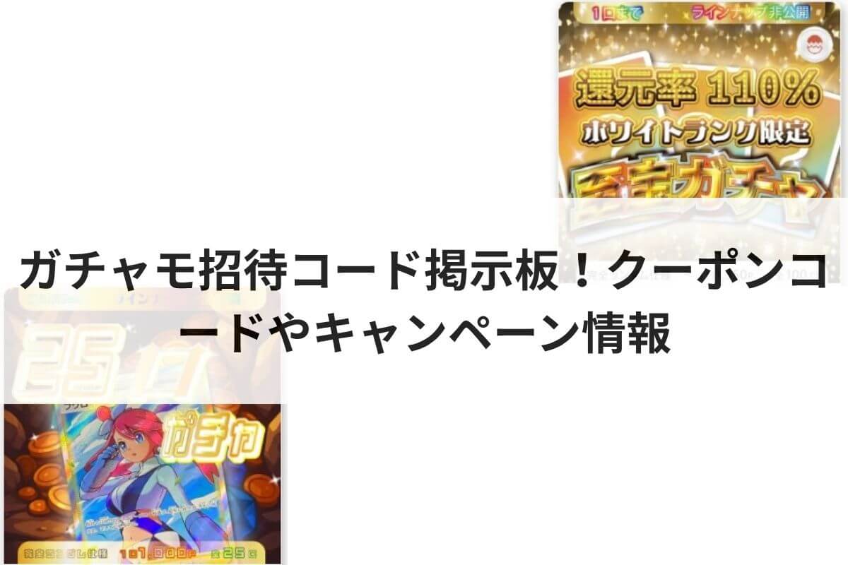 ガチャモの招待コードを使いたい人、使って欲しい人は、記事最下部のコメント欄を掲示板として活用してください!