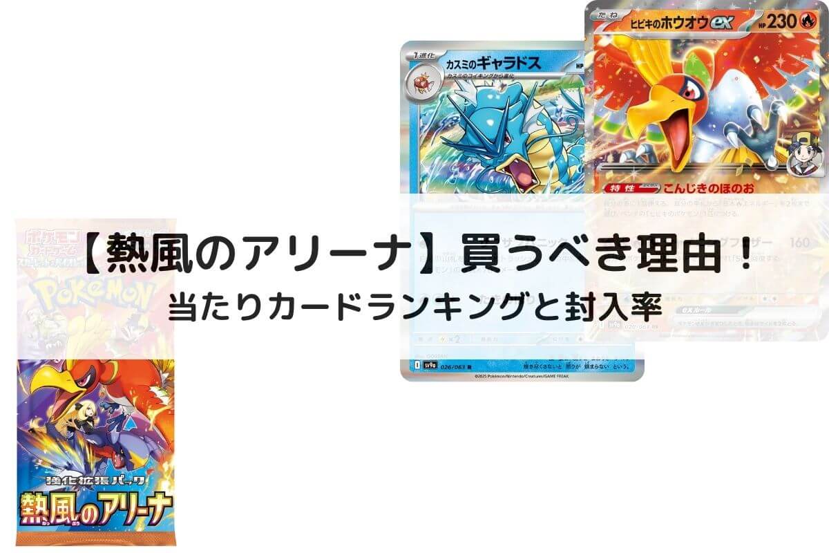 当たりカードランキングや封入率についても調査しましたので、熱風のアリーナの購入を検討の際は、ぜひ参考にしてください。