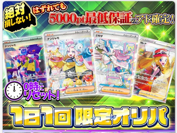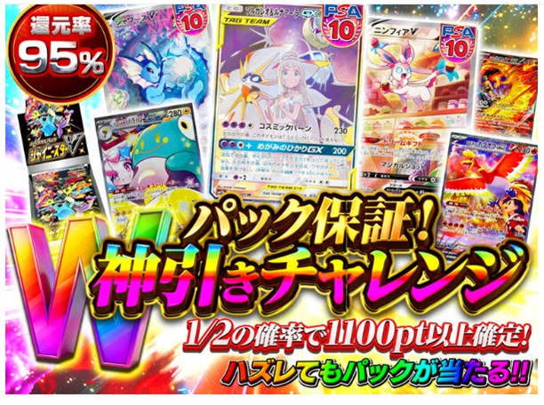 このオリパは、一日に一回だけ引くことができる100%ポイント還元される絶対に損しないオリパです。