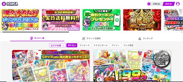 イチカのオリパは、当たりやすさやユーザー対応の良さが高く評価されており、安心して楽しめるサービスです。