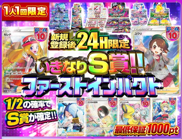 イチカオリパの中には、PSA10評価のカードが確定で当たるオリパもあります。