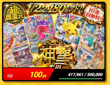 特定の高額オリパでは、PSA10評価のカードや未開封BOXを当てるチャンスがあります。