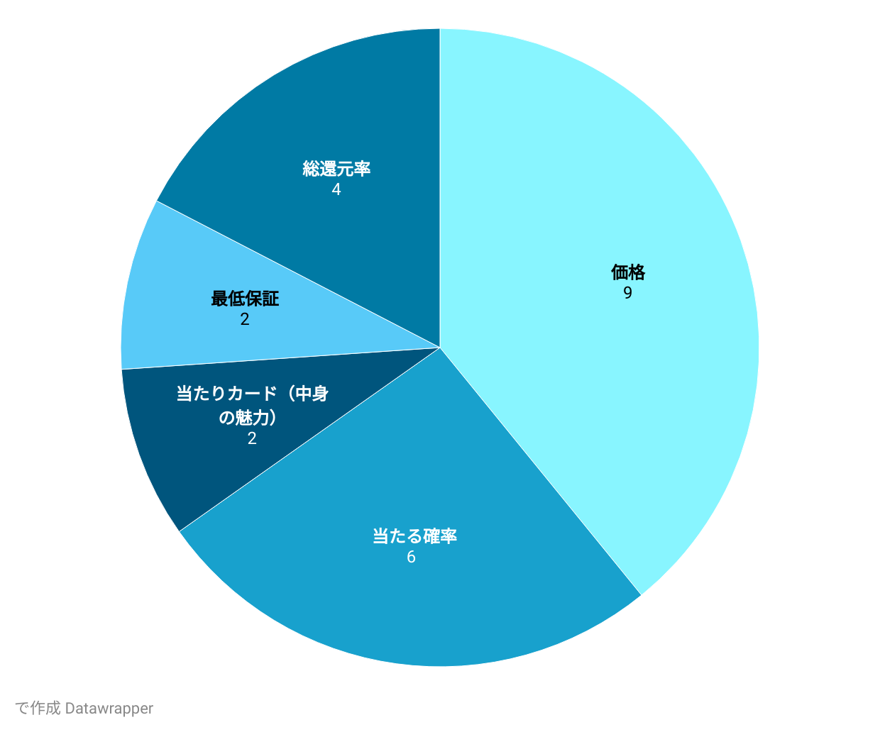 「価格」や「当たる確率」を重要視し、コスパを意識しながらもワクワク感を求めていることが分かります。
