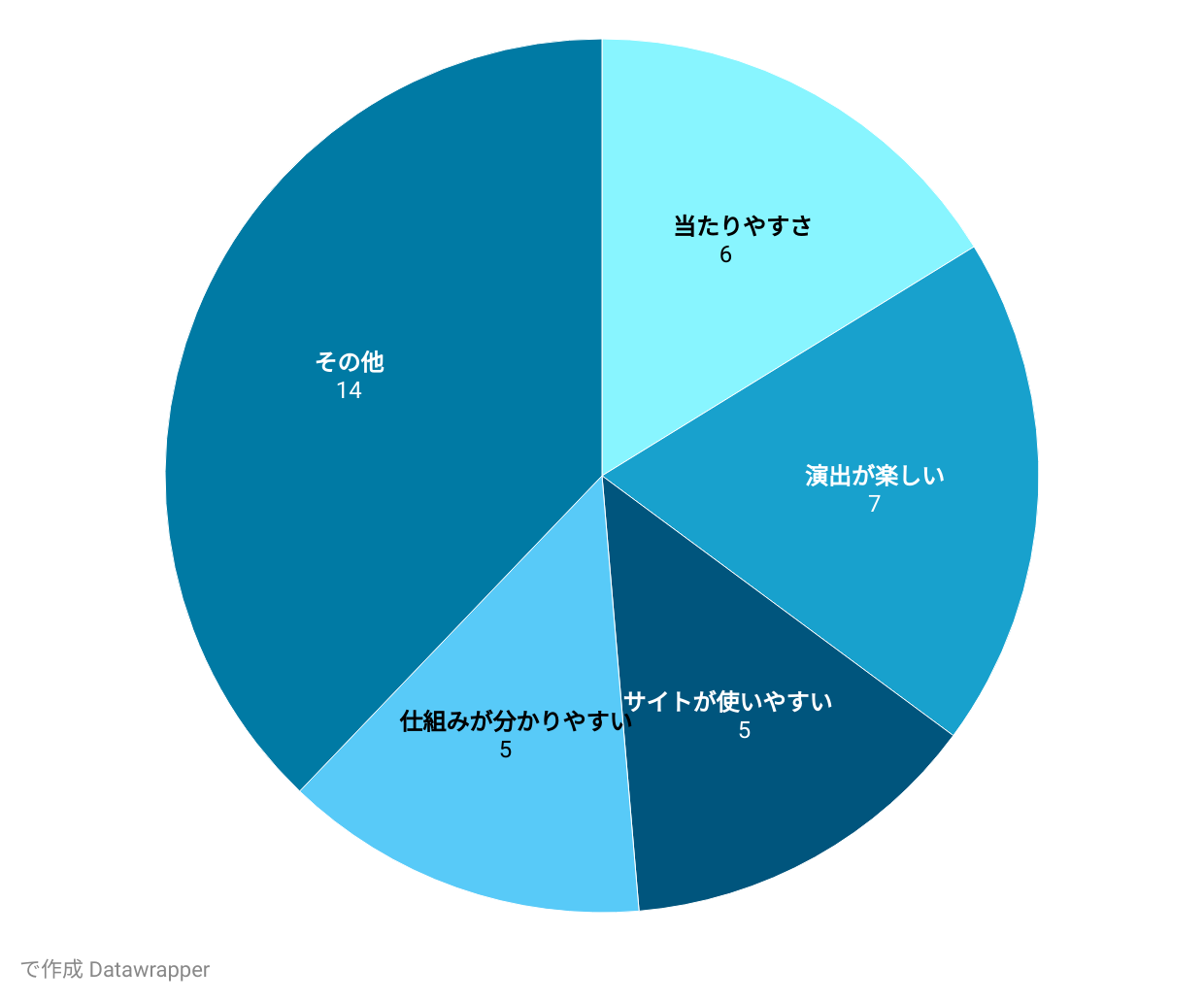 次いで「当たりやすさ」「サイトの使いやすさ」「仕組みの分かりやすさ」など、安心感や快適な体験も重視されています。