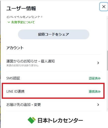 LINE登録後、ID連携を行うと毎週1000pプレゼント抽選など限定クーポンがもらえます。