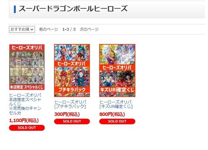 各種オリパも販売しており、特にスーパードラゴンボールヒーローズやポケモンカードのオリパが人気で、550円の「キズ有りスペシャルくじ」や10口5500円の「クロブレくじ」などがあります。