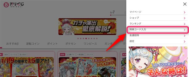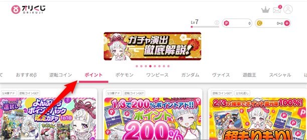 特典コードを入力してゲットしたポイントは、ポイント専用のガチャに使用します。