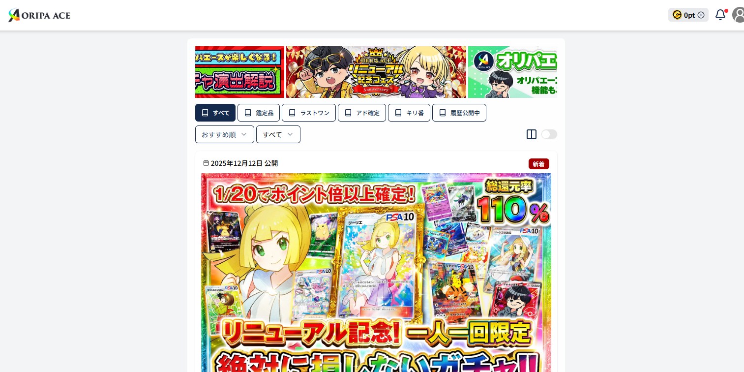 オリパエースは“無料で始めやすく、安全性も高い”初心者向けオンラインオリパです。