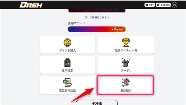 「マイページ」ー「友達紹介」ページからいつでも確認できます。