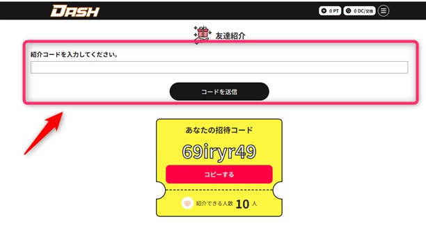 オリパDASHの招待コードとは、新規登録+ポイント購入でがもらえる特典コードのことです。