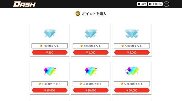 「ポイント購入」ページから最低500円分のポイントを購入します。