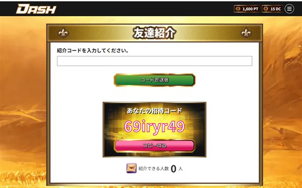 オリパDASHの招待コードは会員登録すれば自動的に付与されます。
