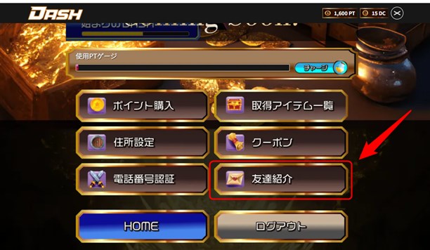 最大2000pt/人 | ・友達が初回課金 ・友達が累計10000円課金 |