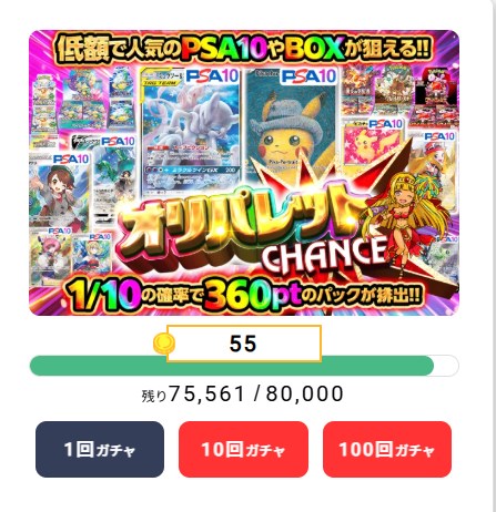 オリパレットは、発送の速さやポイント制度、手軽な価格設定が好評で、初心者にもおすすめできるオンラインオリパサービスです。