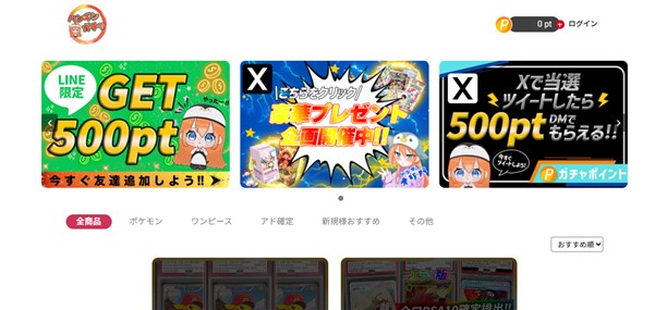 初回特典 LINE追加で500p 期間限定ガチャなど パック確定オリパなど