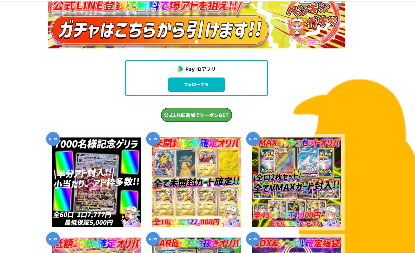 ペンギンガチャは、オンラインで手軽にオリパ(オリジナルパック)を楽しめるサービスです。