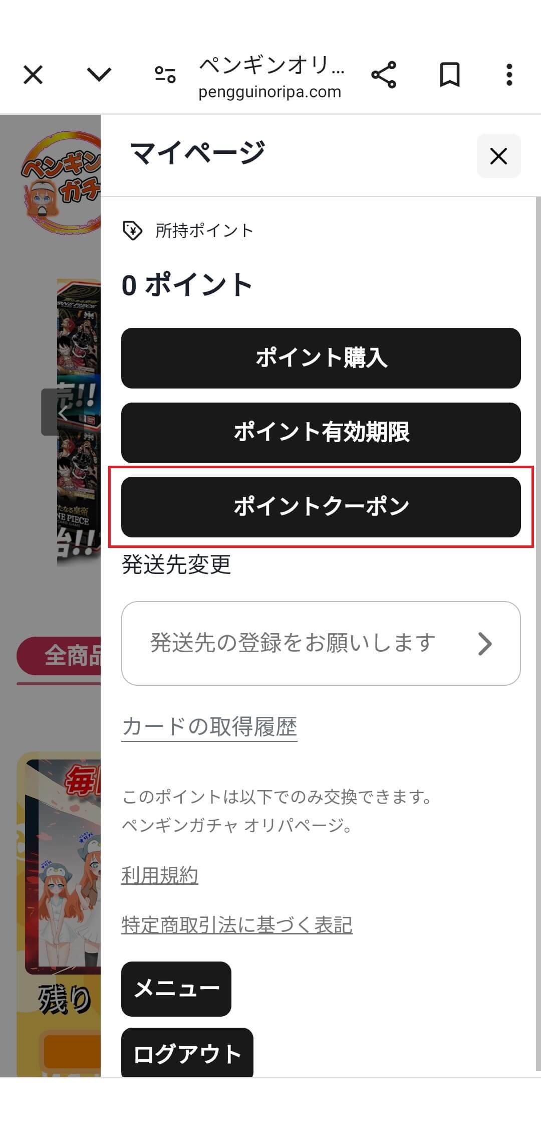 ペンギンガチャは当たったカードを“発送申請して受け取る形式”です。