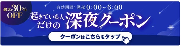 0:00~6:00限定の割引クーポンです。おすすめは10000p(25%オフ!)