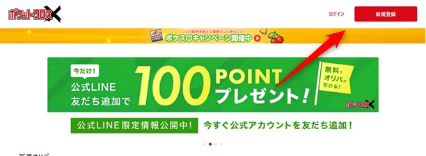 ポケットクロスの公式LINEを友達追加すると、100ポイントが無料で付与されます。