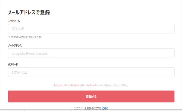 ニックネーム、メールアドレス、パスワードを入力して「登録する」をタップします。