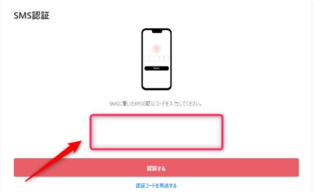 SMSに届いた認証コードを入力し、「認証する」をタップします。