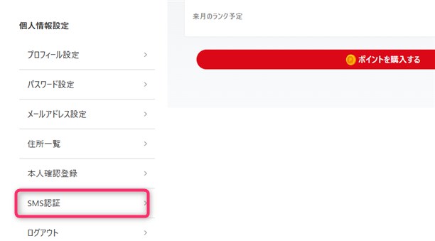 ログイン後、「マイページ」ー「SMS認証」をタップします。