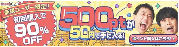 初回ポイント購入時は、最大90%オフの特別割引価格でポイントが購入できます。