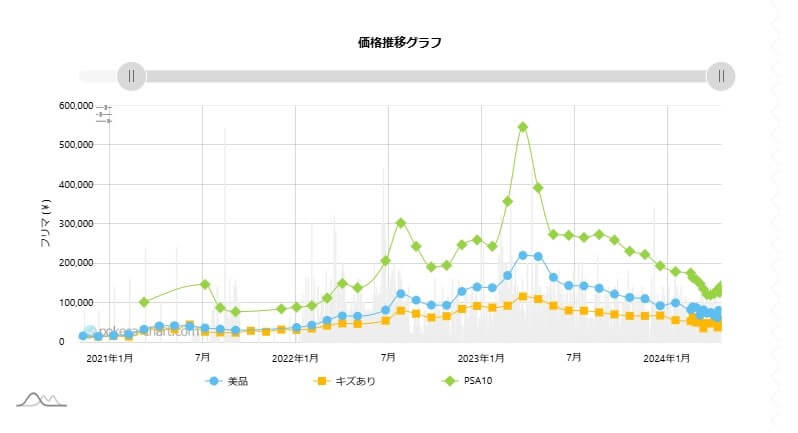 2023年に入ると、その価格は大幅に上がり、ポケカバブルピーク時には20万円を超える取引も見られました。