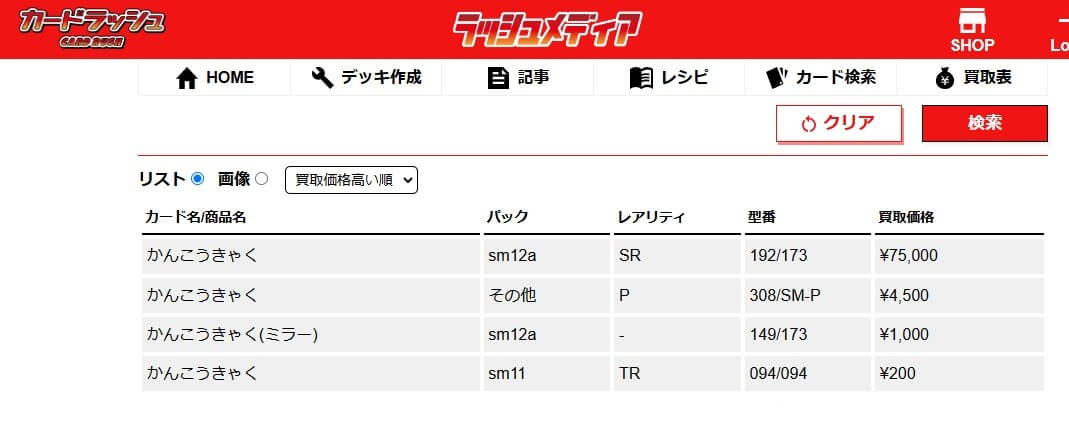 トレカ専門店「カードラッシュ」では、かんこうきゃくSRの店頭買取価格は75000円となっています。