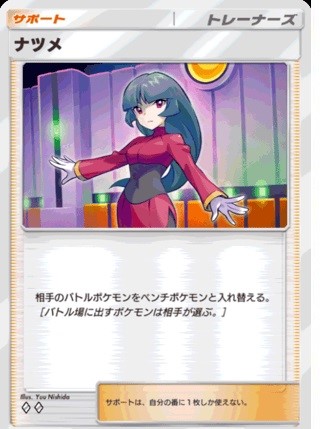 | 説明 | 相手のバトルポケモンを強制的にベンチへ下げることができるため、相手の戦略を乱すのに非常に有効です。たとえば、エネルギーを多く消費しているポケモンや、「どく」や「やけど」などの特殊状態にかかっているポケモンをバトル場から引きずり下ろすことで、相手が再びエネルギーを再配置する手間をかけさせたり、特殊状態の回復を強制できます。また、次のターンに相手がバトル場に戻す可能性が低いサポートポケモンや、準備中のポケモンをバトル場に出させて、弱点を突いたり、ダメージを与える戦略も取れます。 |