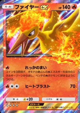 コイン3回を投げて表が出た回数分の炎エネルギーをエネルギーゾーンから自分のベンチポケモンに付けられるため、炎エネルギーを一気に展開するのに非常に有用です。この効果でベンチのポケモンにエネルギーを分散させておくことで、次のターンに備えて強力な技がすぐに使えるようになります。たとえば、エネルギーコストが重い技を持つベンチのポケモンを早めに育て、後半戦で大ダメージを狙う戦略が考えられます。 ・ヒートブラスト この技は70ダメージを安定して与えられるため、序盤や中盤に手堅くダメージを積み重ねるのに適しています。また、エネルギーコストが比較的軽いため、「れっかのまい」で余剰エネルギーが供給できれば、ヒートブラストと他の高火力技を状況に応じて使い分ける戦略がとれます。 |