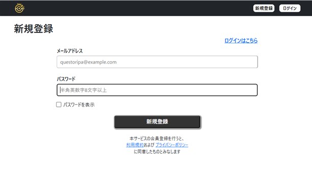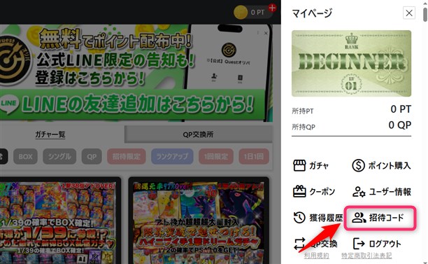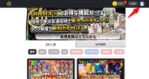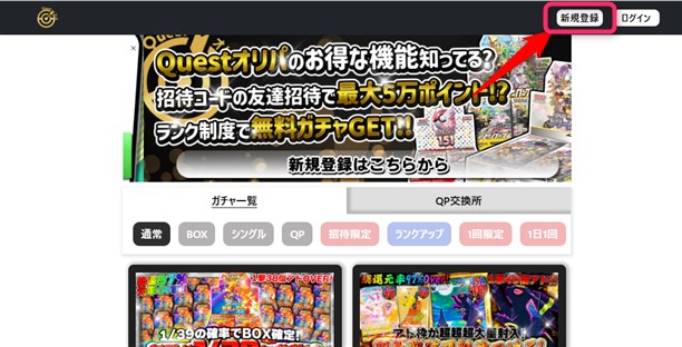 公式サイトから、Questオリパに新規会員登録することで自動的に発行されます。