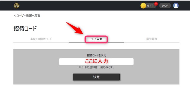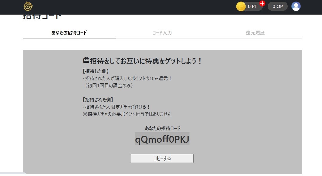 招待された人限定ガチャがひける※招待ガチャの必要ポイント付与ではありません