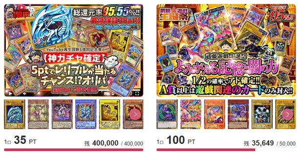 | オリくじ | 5 | 100~1000 | 300 | クレジットカード、銀行振込、PayPay、コンビニ、Amazon pay | パックかBOXが必ず当たるガチャ一回無料 | |